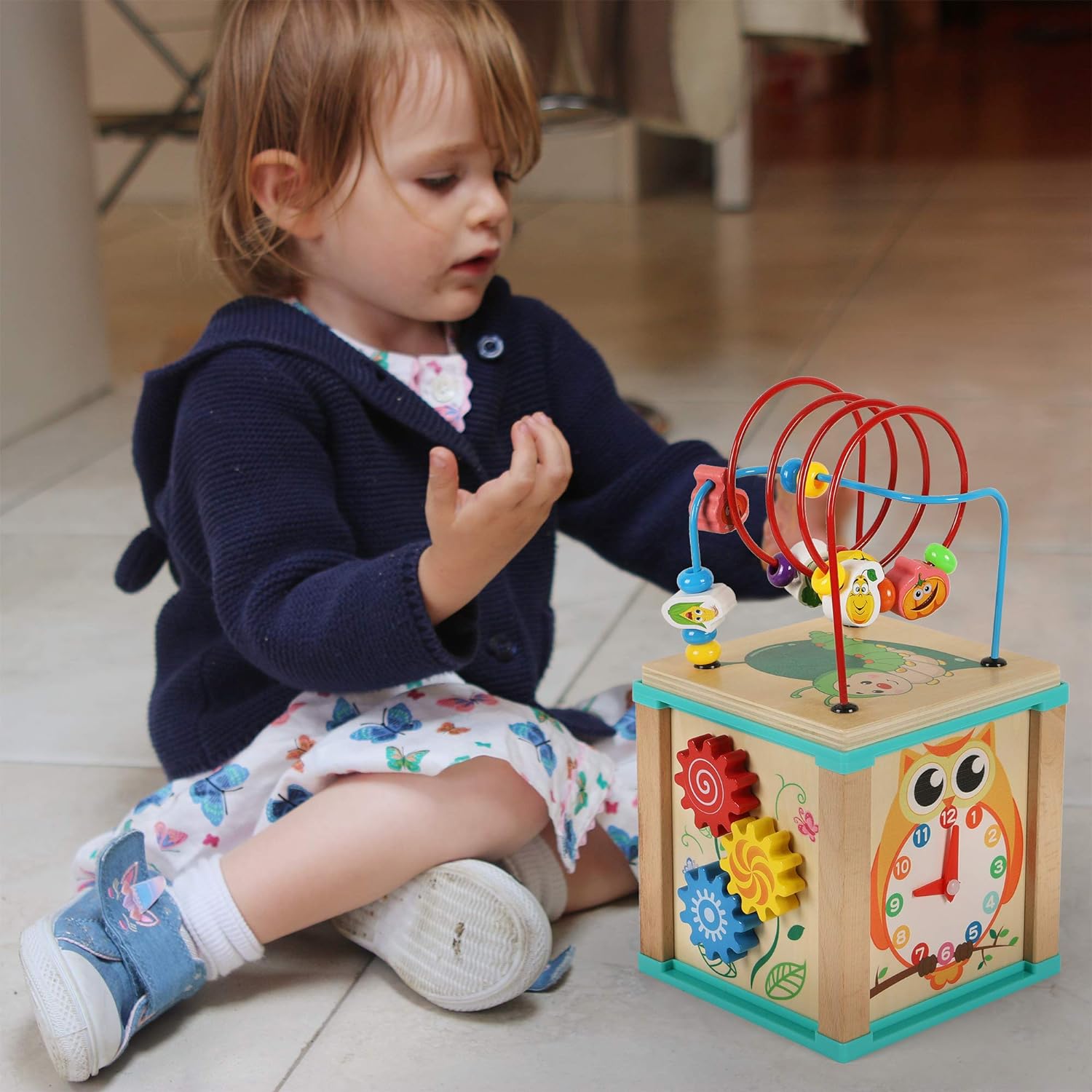 5 in 1 ActivityCube pour bébé est une source de divertissement inestimable pour les enfants, les maintenant occupés pendant des heures. Il s'agit de jouets d'apprentissage et de développement, conçus pour être à la fois sûrs et durables, adaptés aux enfants de 1 à 4 ans. Fabriqué en bois massif, il arbore des couleurs vives et est spécialement conçu pour être facile à manipuler par de petites mains curieuses.