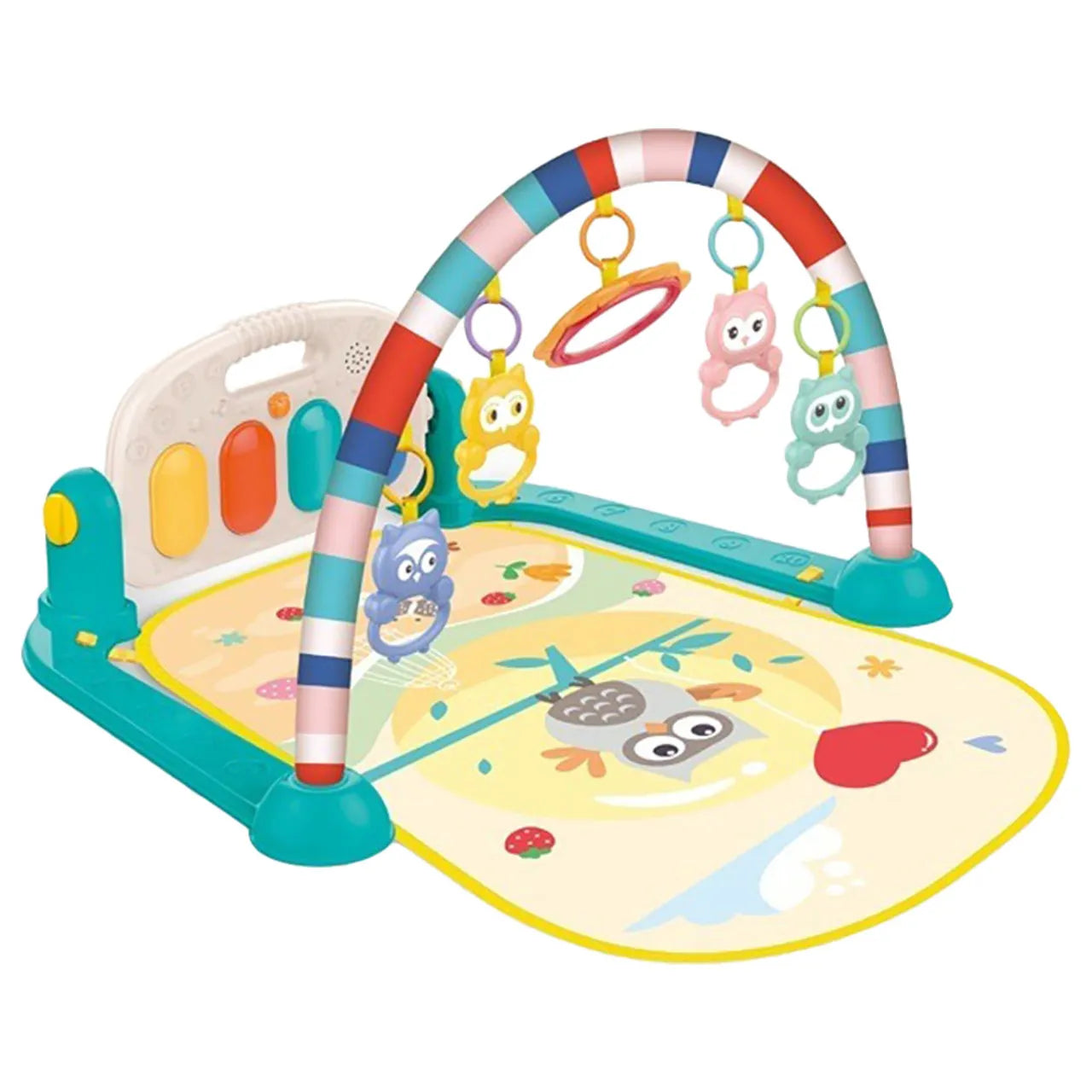 Ce tapis de jeu de piano 3 en 1 offre beaucoup de plaisir aux petits explorateurs. Ce tapis de piano coloré grandira avec votre enfant. Le tapis a une arche avec 4 jouets en plastique – des hochets et un miroir. Le tapis est conçu pour que dès les premiers jours de la vie l’enfant puisse se développer physiquement. Le tapis a un piano interactif qui joue des mélodies agréables. Le piano inclus peut être décroché et fixé au berceau.